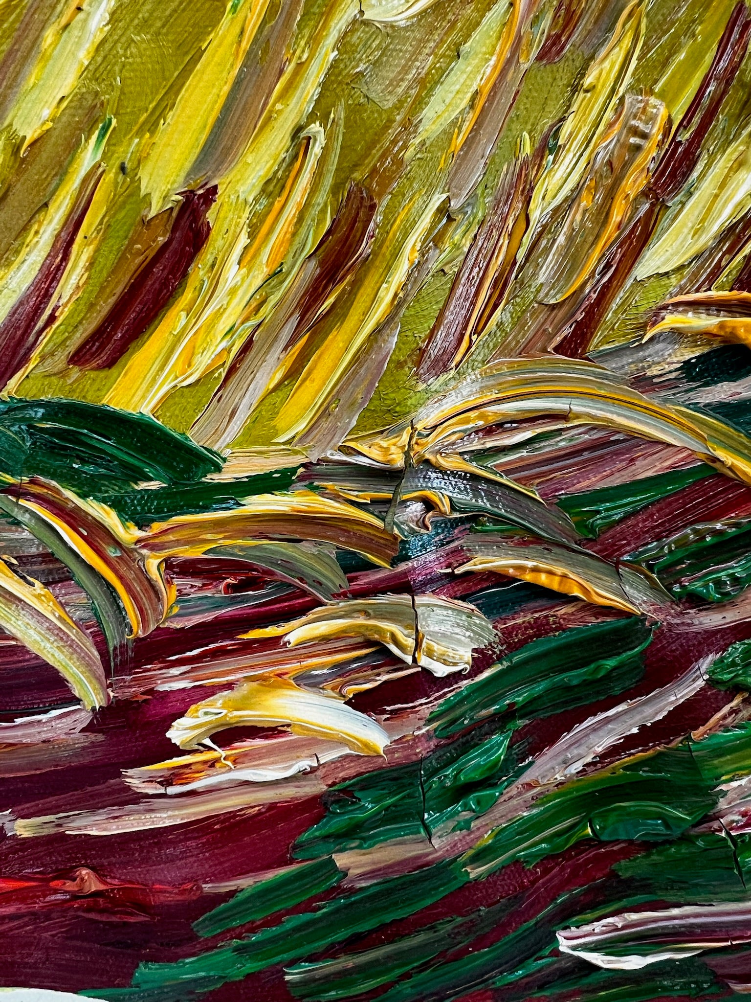 Campo de trigo con cuervos – Pintura al óleo expresionista sobre lienzo (50,5 × 103 cm)