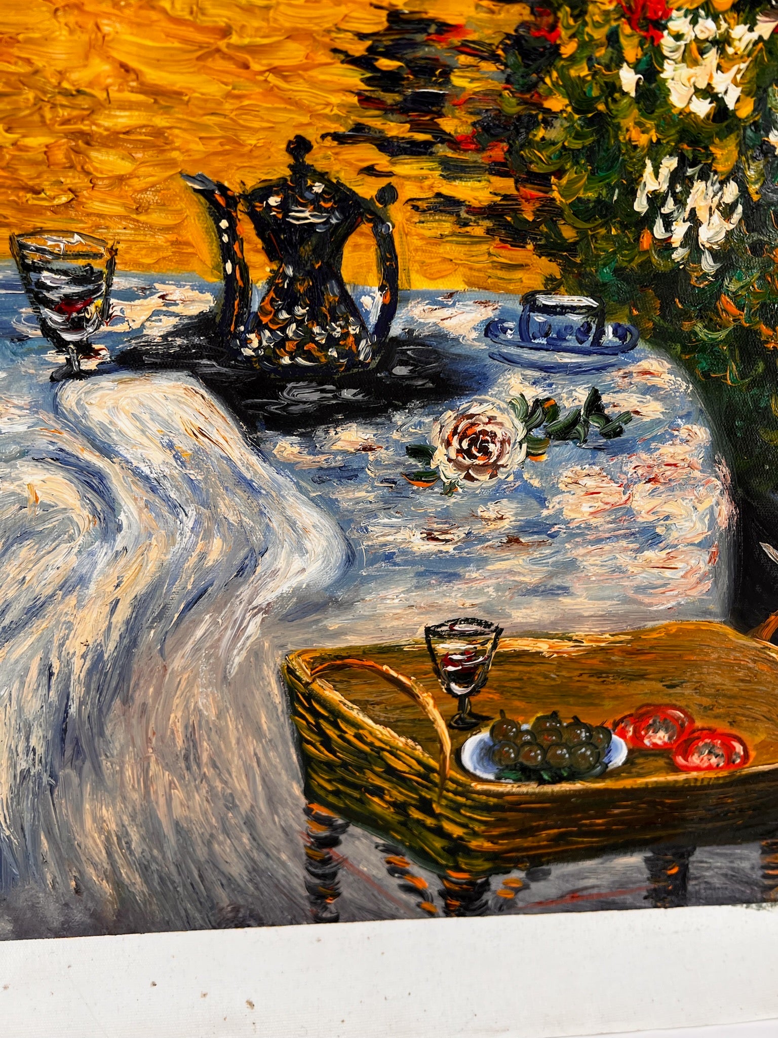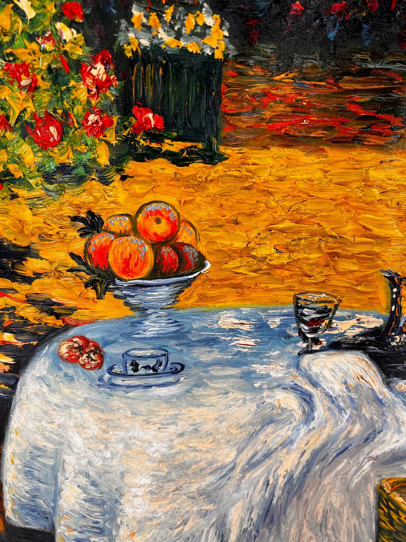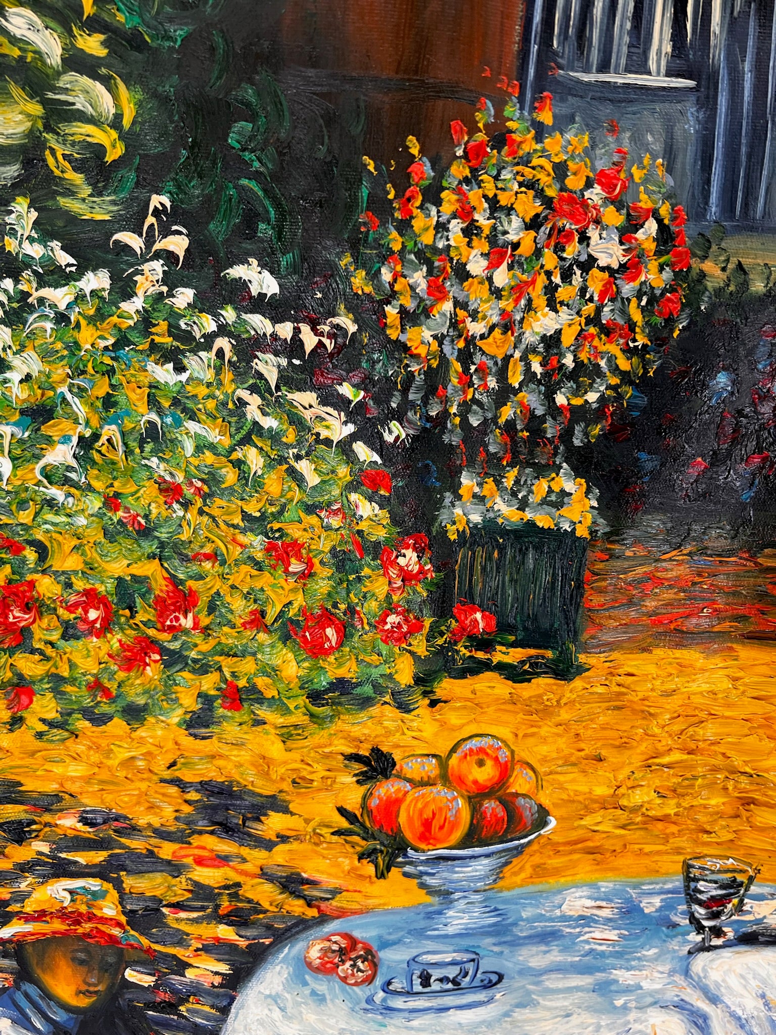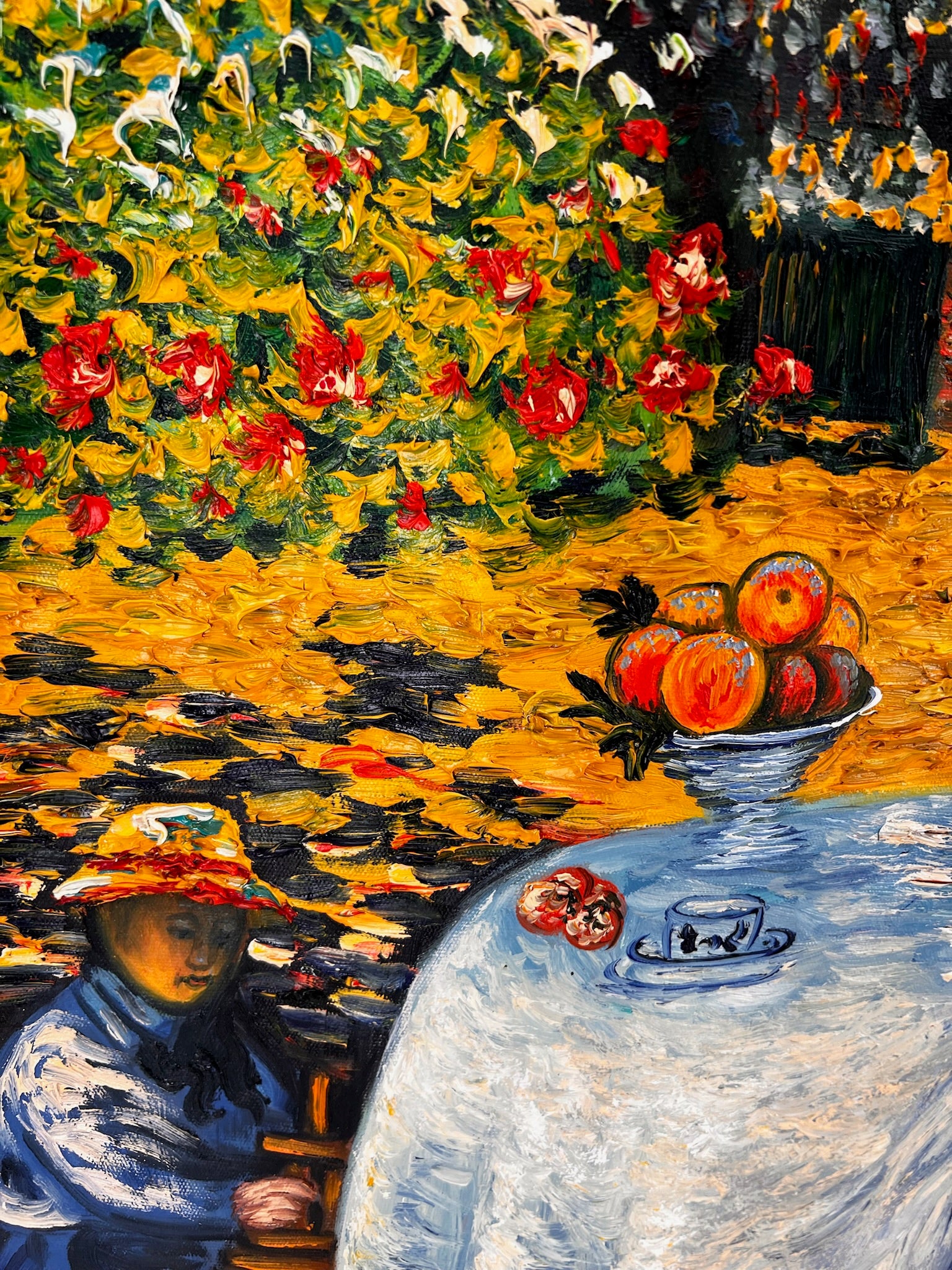 Deze verfijnde replica van Le Déjeuner vangt de essentie van Claude Monet’s meesterlijke aandacht voor licht en sfeer. Het tafereel, een elegante lunch in een weelderige tuin, straalt rust en verfijning uit. Monet’s kenmerkende impressionistische techniek komt tot uiting in de subtiele penseelstreken en het harmonieuze kleurgebruik.