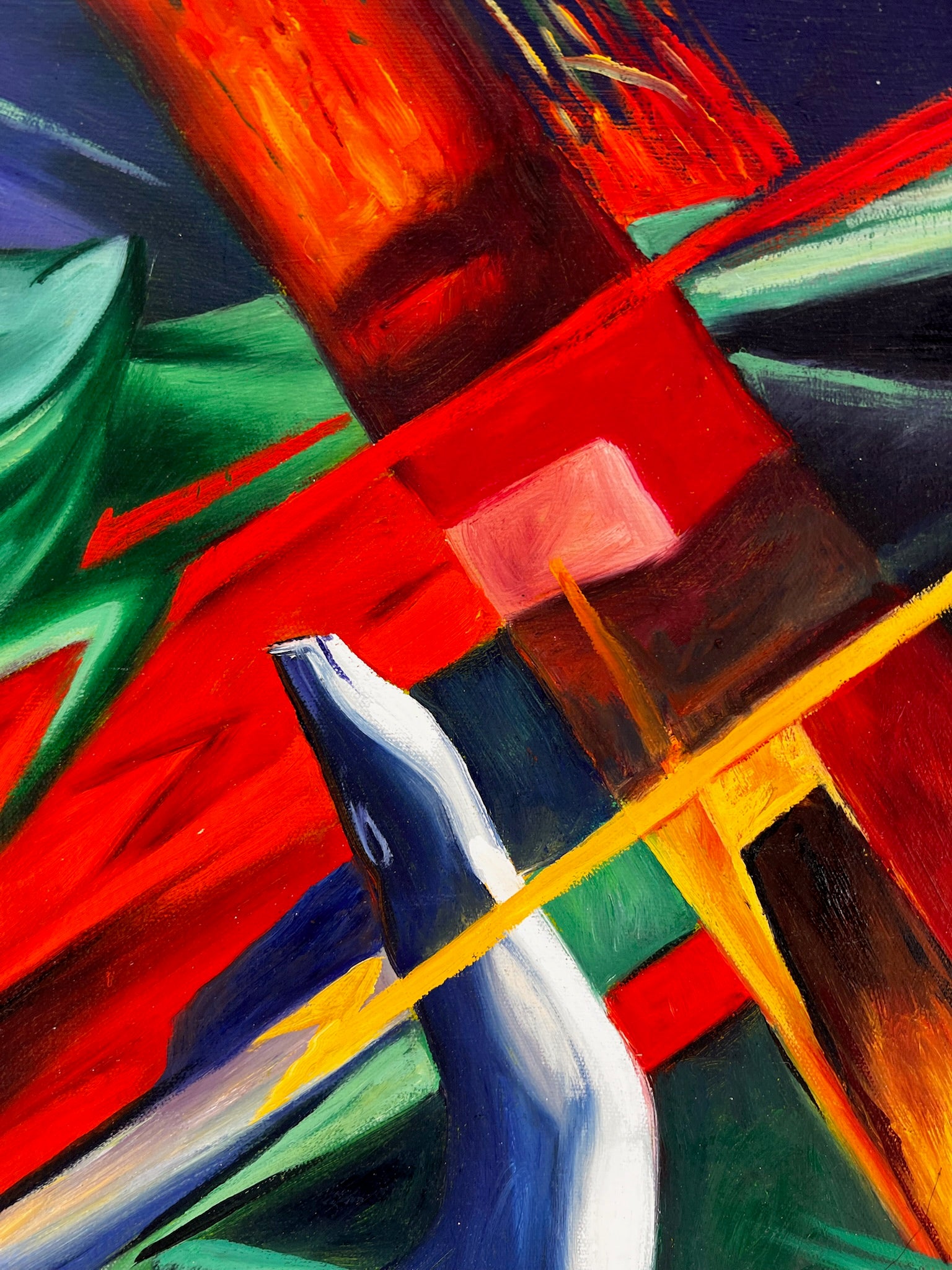 Esta réplica pintada a mano reproduce la paleta vívida y las formas abstractas de Marc, convirtiéndola en una adición impactante y provocadora a cualquier colección.